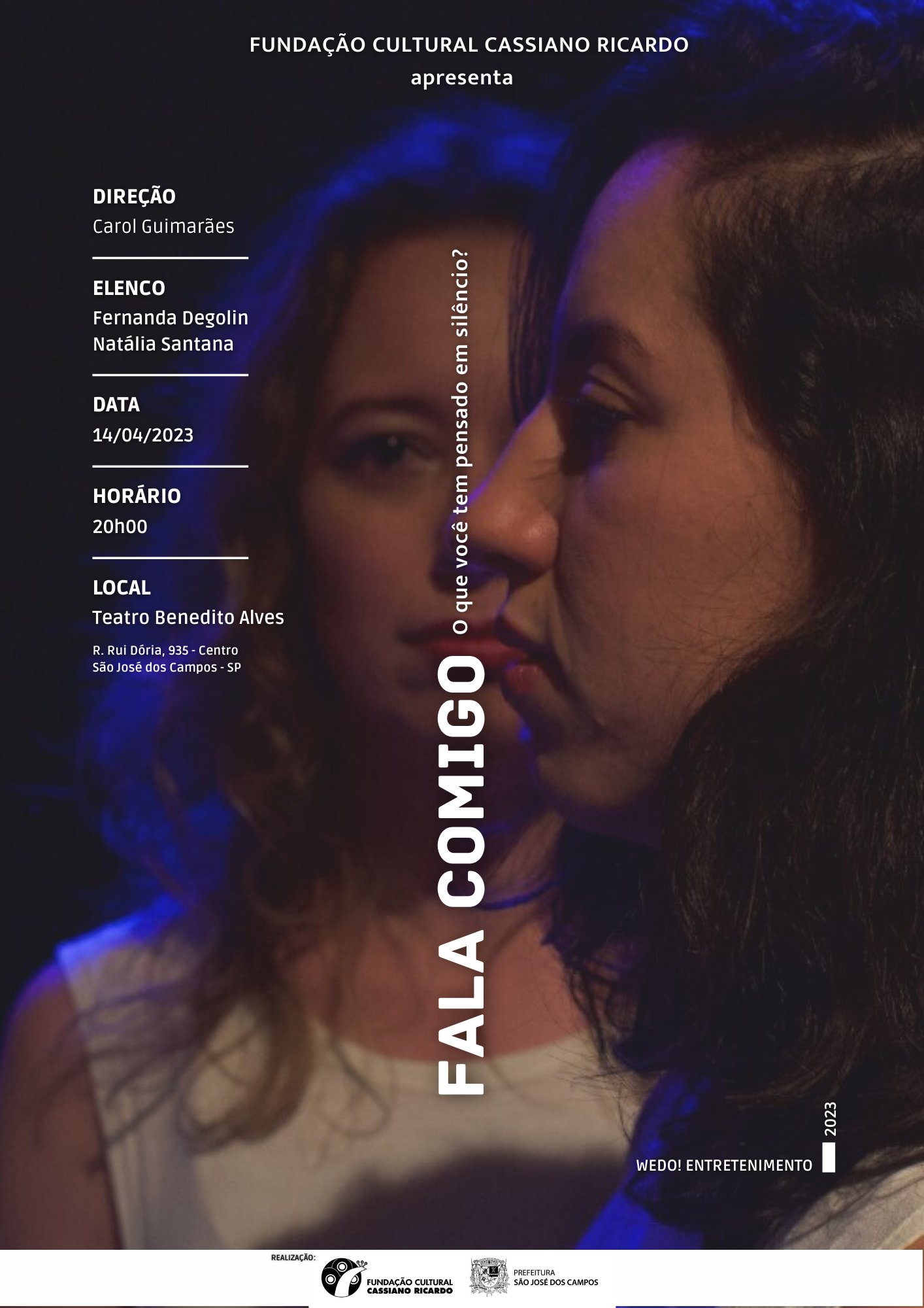 Fala Comigo, inspirada na obra “Talk to me like the Rain”, do dramaturgo norte-americano Tennessee Williams, foi meu trabalho utilizando a linguagem de e-teatro, um peça que teve como palco a live do Instagram. Em 2023, em uma adaptação para o palco, circulamos em diversas cidades do Estado de São Paulo e participamos de aclamado Festival de Curitiba, no mesmo ano.